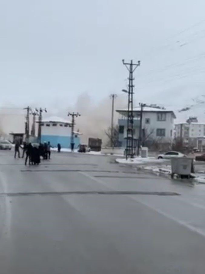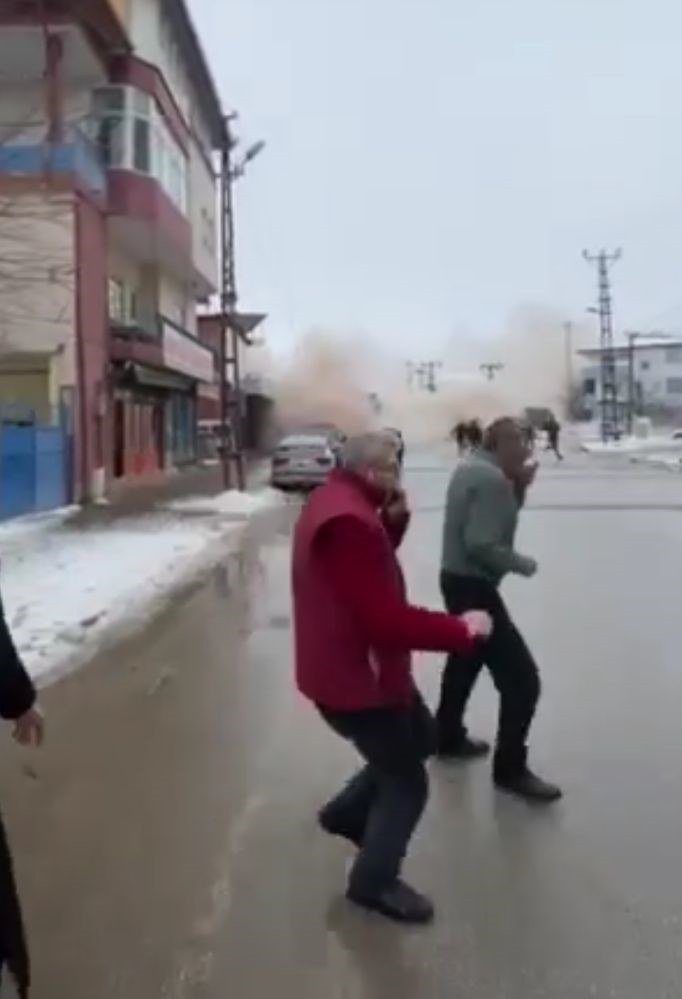 Görüntülerde mahallenin arka taraflarında çöken binaların oluşturduğu toz bulutu da yer aldı.