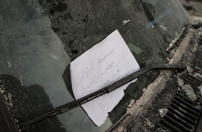 Enkaz altında kalan bir otomobilin üzerine, “Lütfen arabama zarar vermeyin” yazılı not bırakıldığı görüldü.