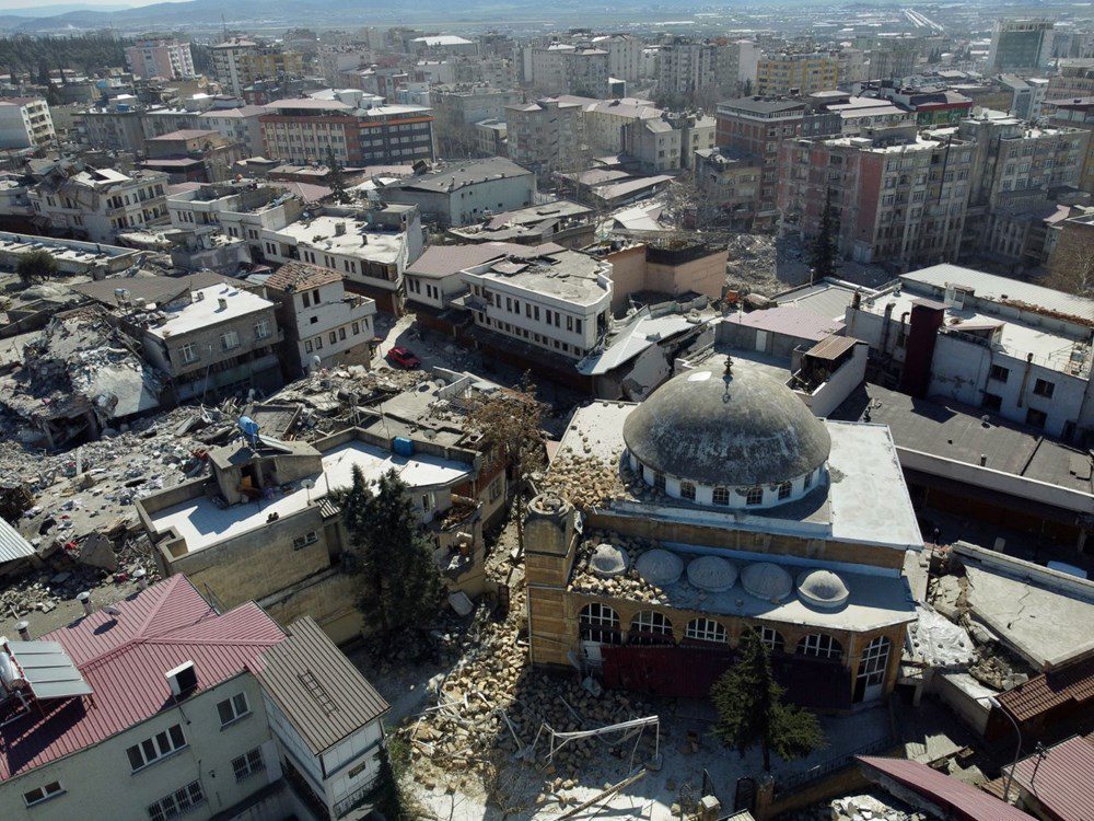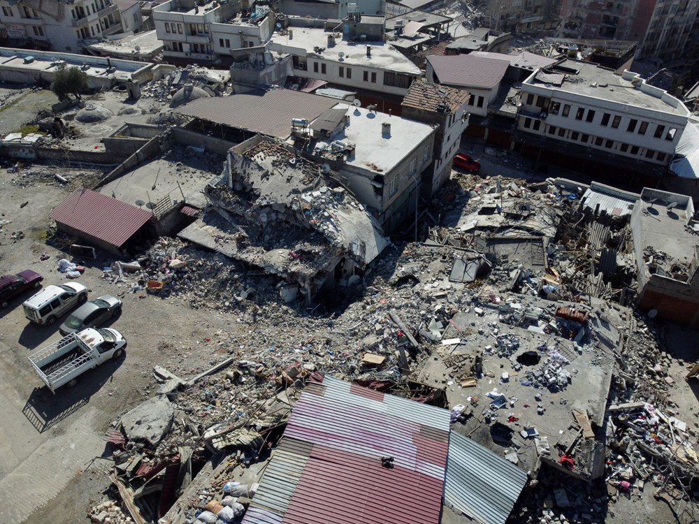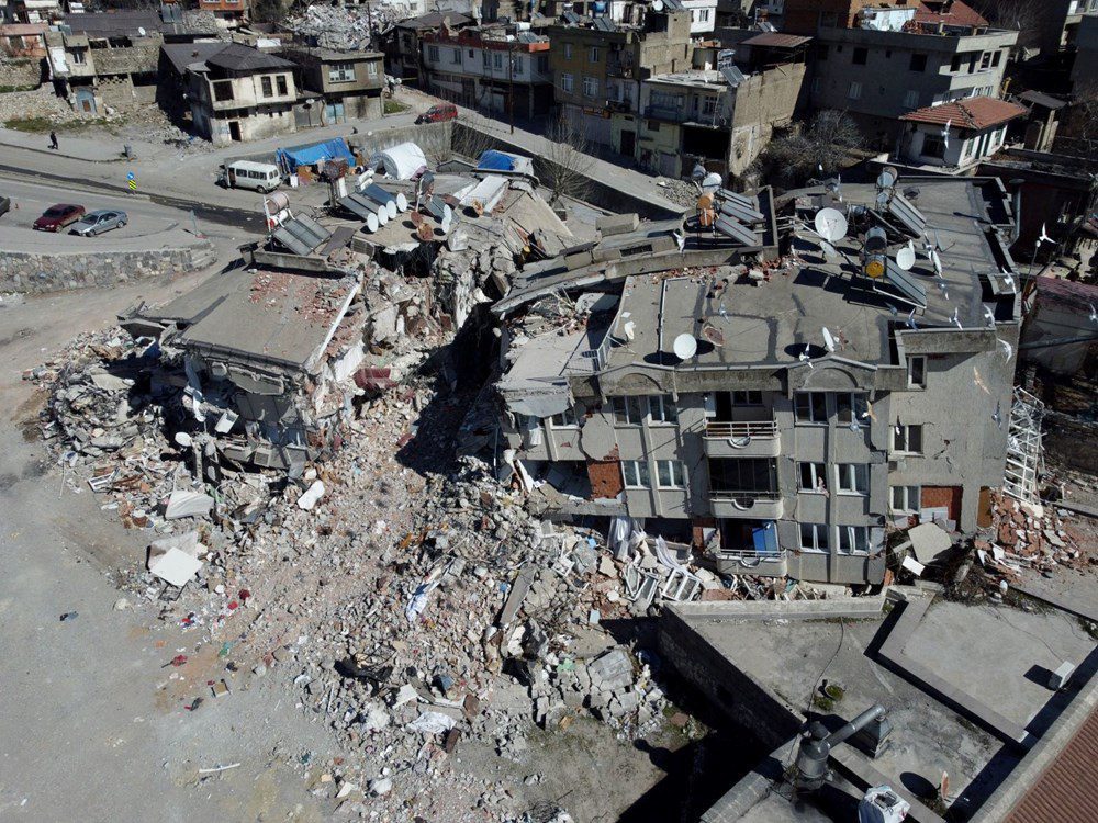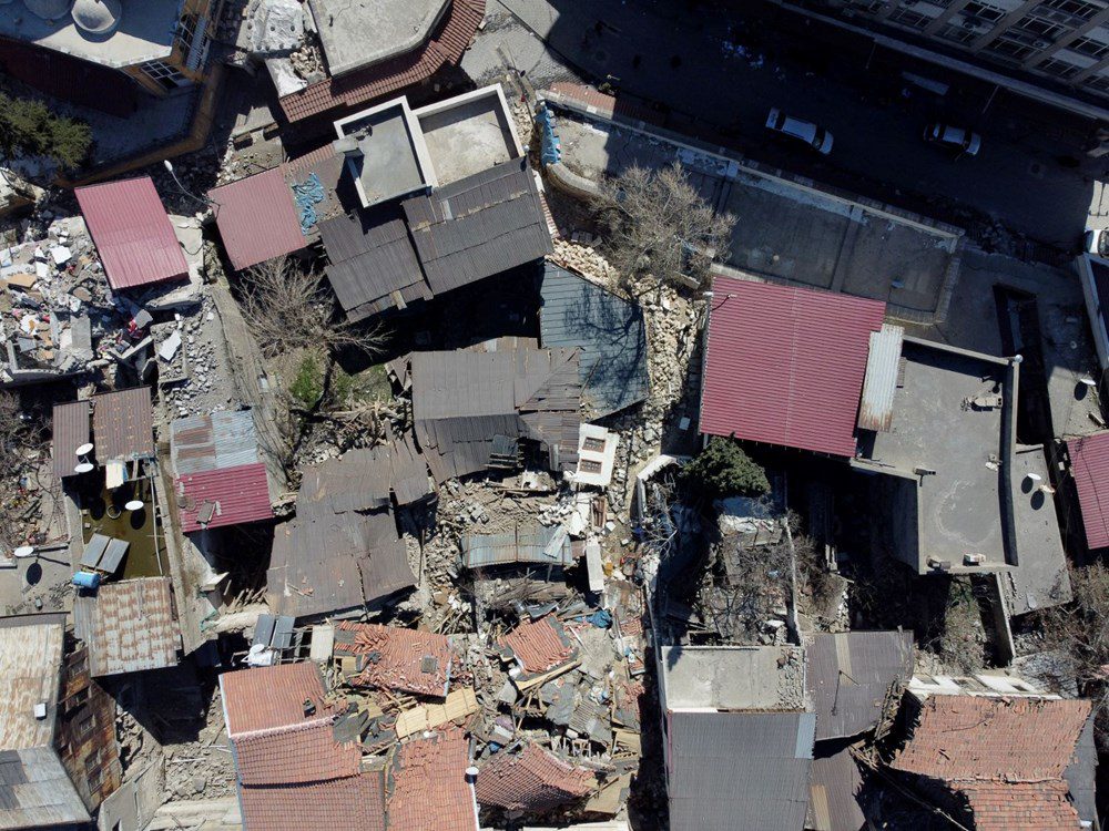 Havadan çekilen görüntülerde yapılardaki yıkım depremin etkisini gözler önüne seriyor.