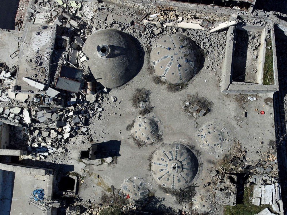 Depremler nedeniyle enkaza dönüşen taş ve ahşap evler ile Tarihi Maraş Kapalı Çarşısı’nın son hali dronla görüntülendi.