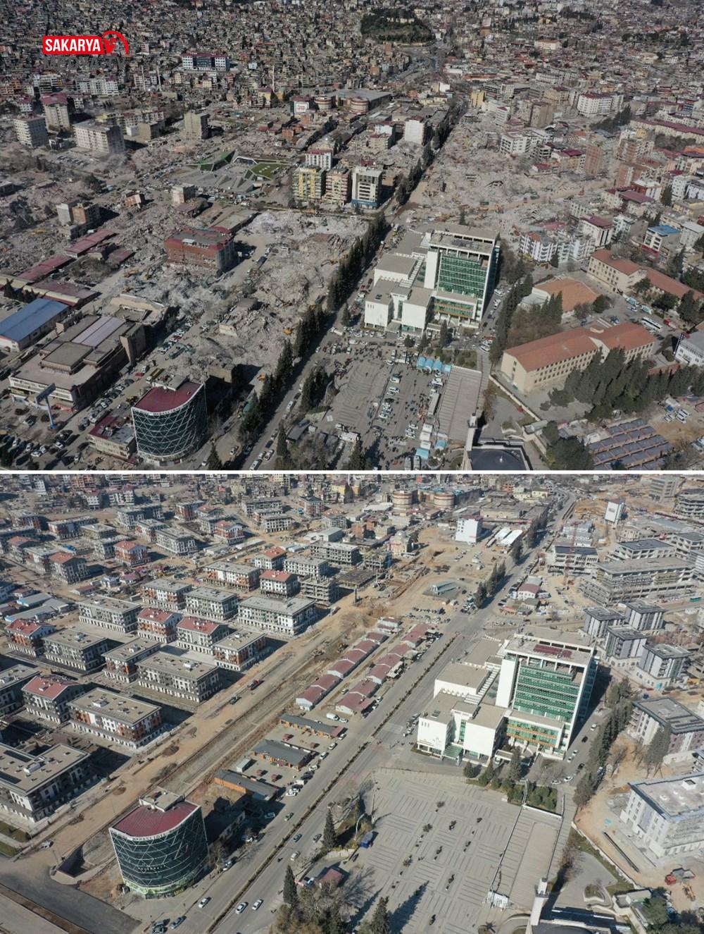 Kahramanmaraş merkezli depremlerin büyük yıkıma neden olduğu il merkezleri afetin ikinci yılında havadan görüntülendi. 6 Şubat 2023’teki depremlerin merkez üssü Kahramanmaraş ile Hatay, Adıyaman ve Malatya’da çekim yapıldı. Depremin hemen sonrası ve afetin ilk yılında çekimi yapılan noktaların 2025’teki durumları dronla aynı açıdan kayıt altına alındı.