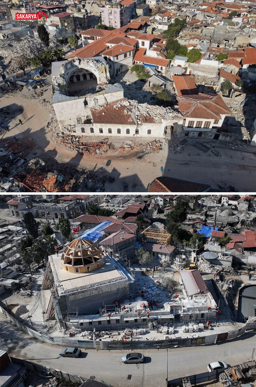 Habib-i Neccar Camisi’nin depremin hemen sonrasında ve 2025’teki durumu, dronla aynı açıdan kayıt altına alındı.