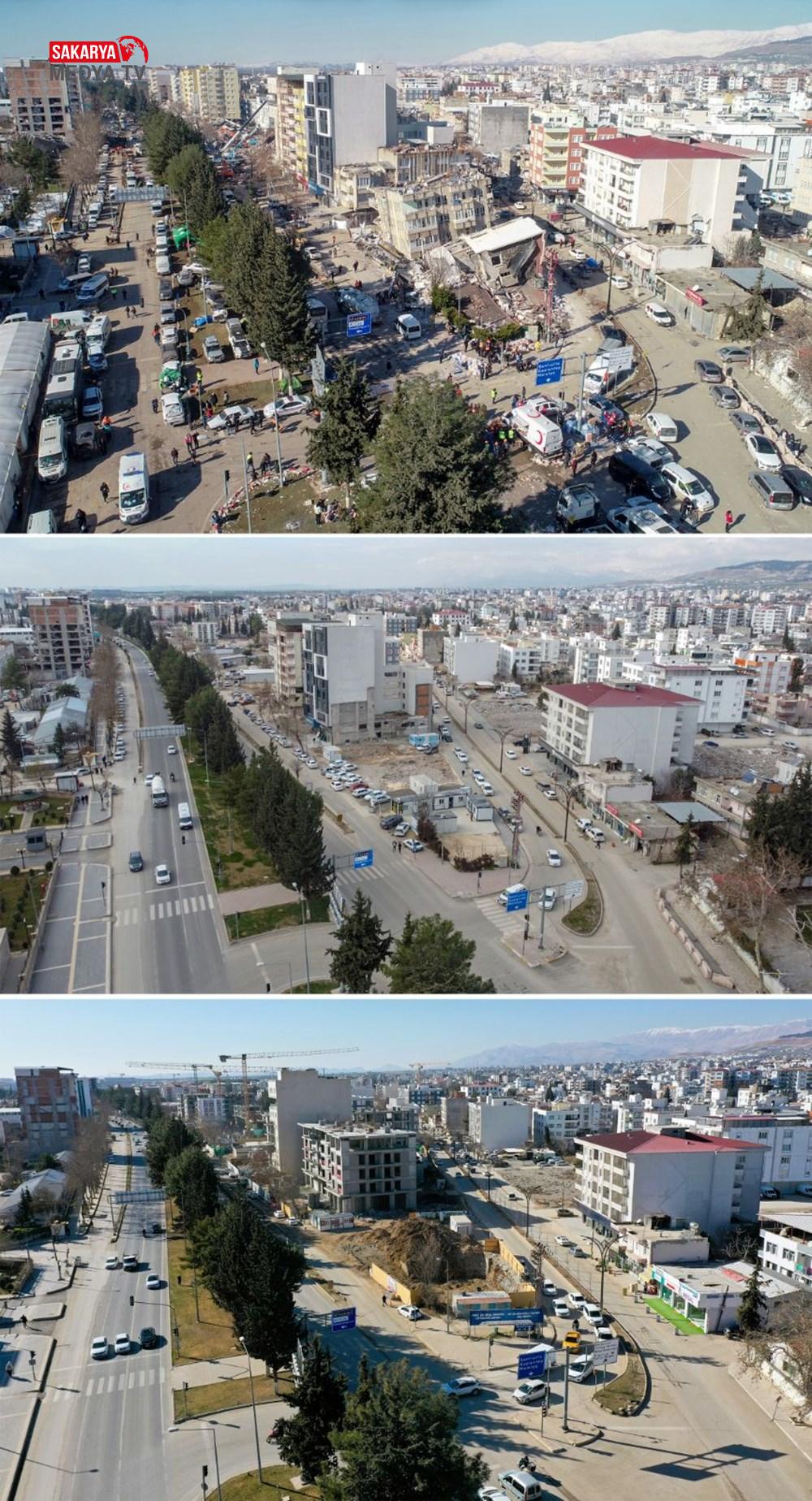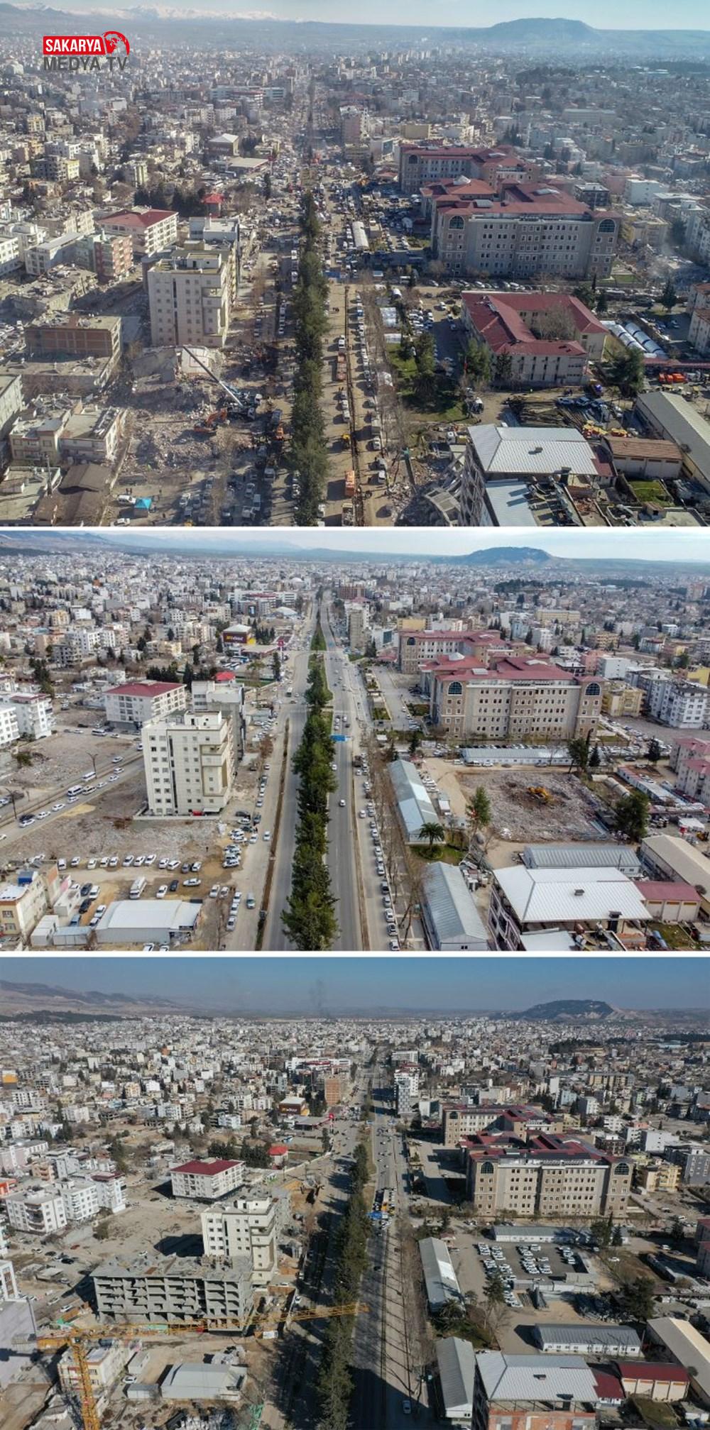 Malatya’nın merkezinde, afetin ilk yılında görüntülenen noktaların 2025’teki durumları dronla aynı açıdan kayıt altına alındı.