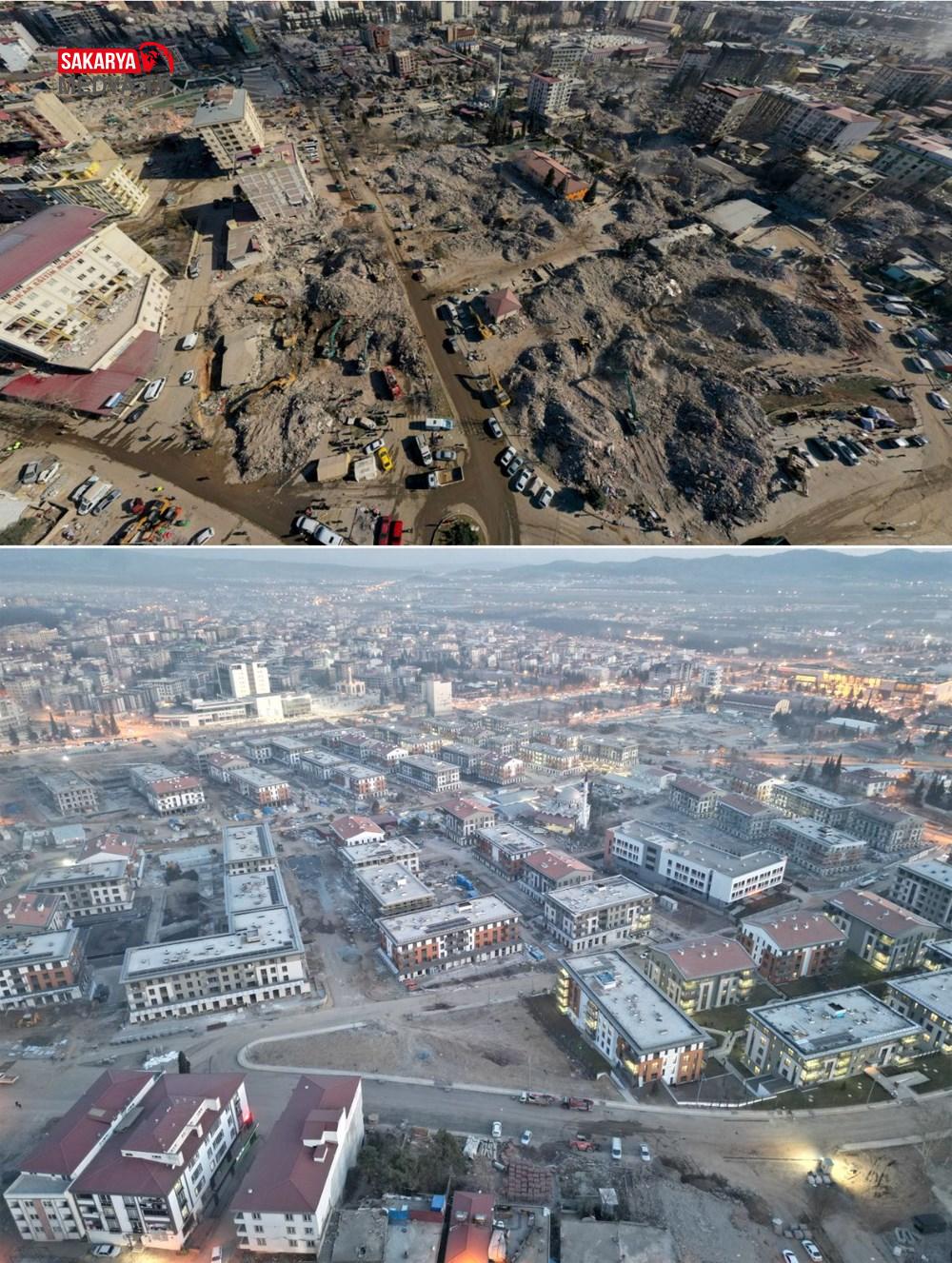 Kahramanmaraş’ın Elbistan ilçesinde depremin hemen sonrası ve afetin ilk yılında görüntülenen noktaların 2025’teki durumları, dronla aynı açıdan kayıt altına alındı.