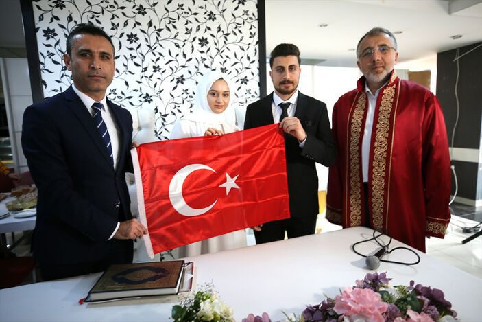 Çiftin nikahı Nevşehir Belediye Başkanı Mehmet Savran tarafından kıyıldı. İmzaların atılmasının ardından Başkan Savran evlilik cüzdanını teslim ederken, çiftin nikah şahitliğini yapan Gençlik ve Spor İl Müdürü Muhsin Özdemir de çifte Türk bayrağı ve Kur’an-ı Kerim hediye etti.
