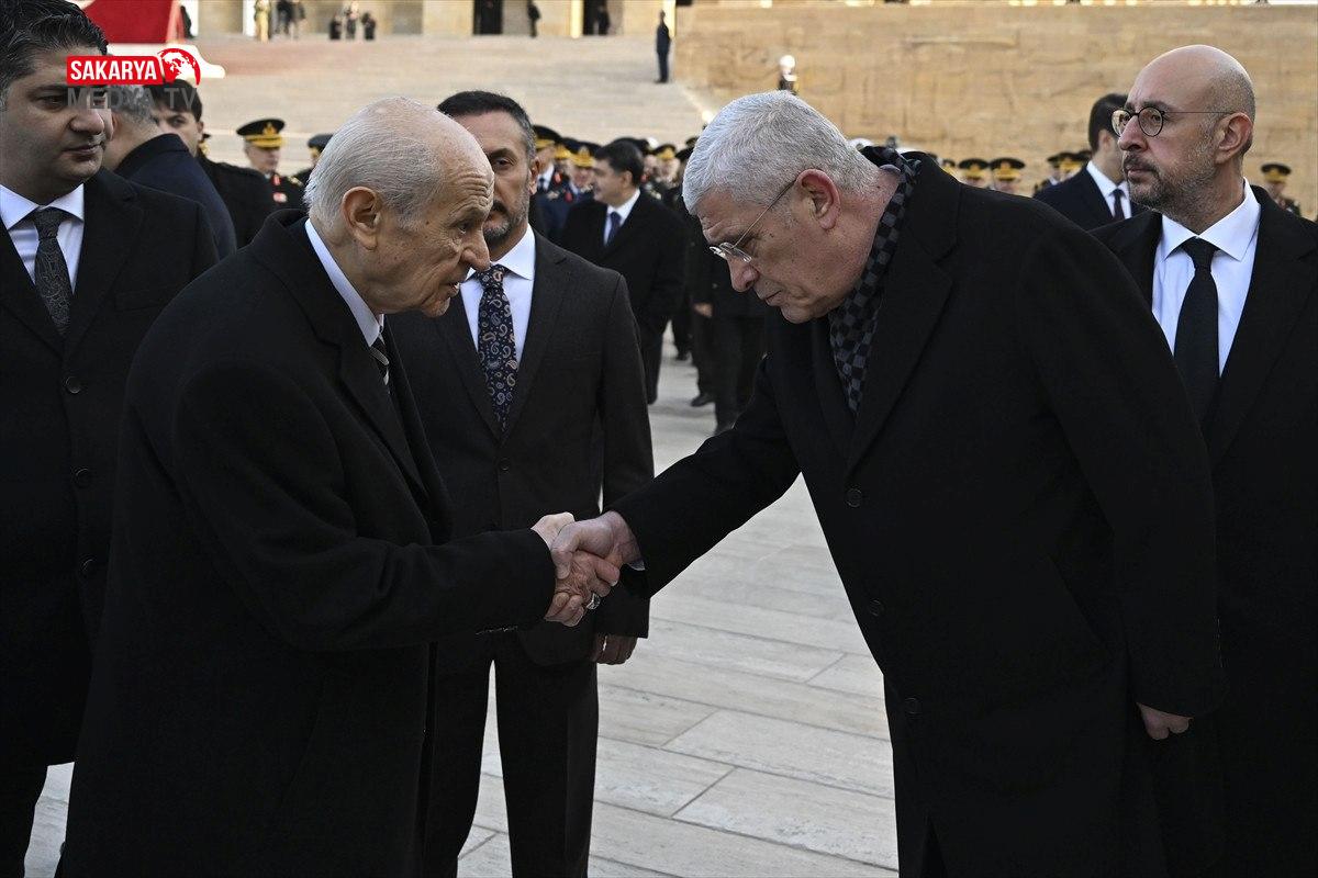 İyi Parti Genel Lideri Müsavat Dervişoğlu, Meclis’te idam ipi fırlattığı MHP Lideri Devlet Bahçeli ile yeniden tokalaştı. Daha evvel Anıtkabir’de 29 Ekim Cumhuriyet Bayramı hasebiyle düzenlenen merasimde Bahçeli ile tokalaşan Dervişoğlu, 10 Kasım’da da Bahçeli’nin elini sıktı.