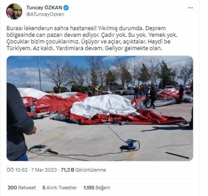 Ayrıca bölgede çadır yok iddiaları da asılsızdır. Bugüne kadar Hatay’da 107 bin 959 adet çadır, 4 bin 11 adet konteyner kurulmuştur.
