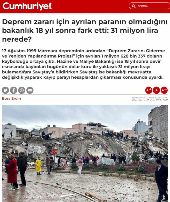 1999 sonrası deprem zararı için ayrılan 31 milyon TL ortada yok iddiaları