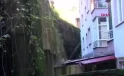 Heyelanın vurduğu binanın yıkılan istinat duvarı ömrünü tamamlamış