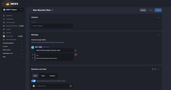 Memler, kanal istatistikleri, tepki rolleri ve daha fazlasını ekleyebilirsiniz.