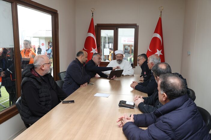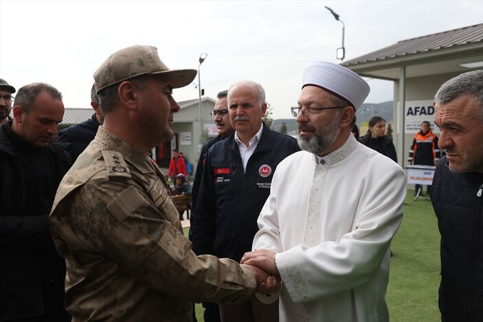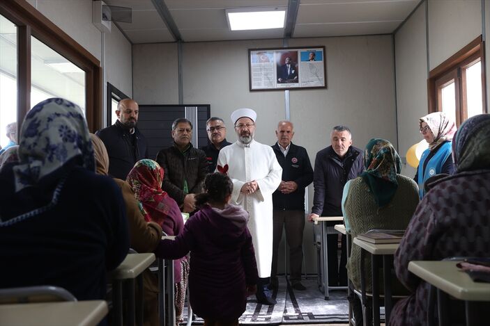 Erbaş, ayrıca konteyner kentte yetişkinler için açılan Kur’an kursunu da ziyaret ederek vatandaşlara geçmiş olsun dileklerini iletti.