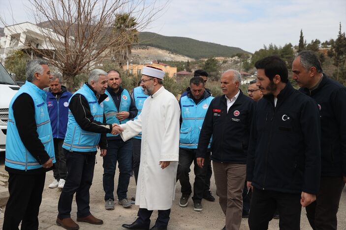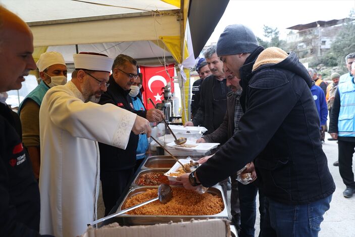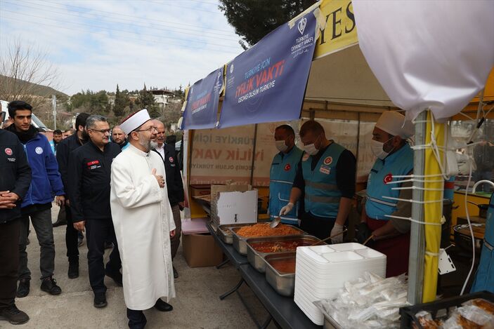 Daha sonra Nurdağı merkezde kurulan Diyanet İşleri Başkanlığı ve Türkiye Diyanet Vakfı Deprem Koordinasyon Merkezi’ne geçen Erbaş, incelemelerde bulunarak çalışmalara ilişkin bilgi aldı, ardından aşevinde vatandaşlara yemek dağıttı.
