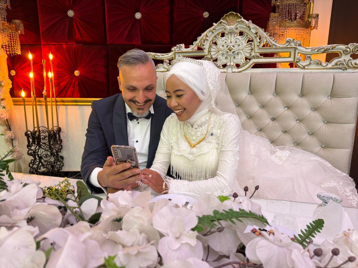 Burada kınası ve nişanı yapılan çift, Türk usulüne göre evlenerek dünyaevine girdi. Düğünde çift, telefonla görüntülü olarak Zahiya ailesiyle konuştu. Mersin’de yaşayacak Kanat ve Zahiya çifti, 6 ay sonra da Endonezya’ya gidip Endonezya kültürüne göre tekrar düğün yapacak.