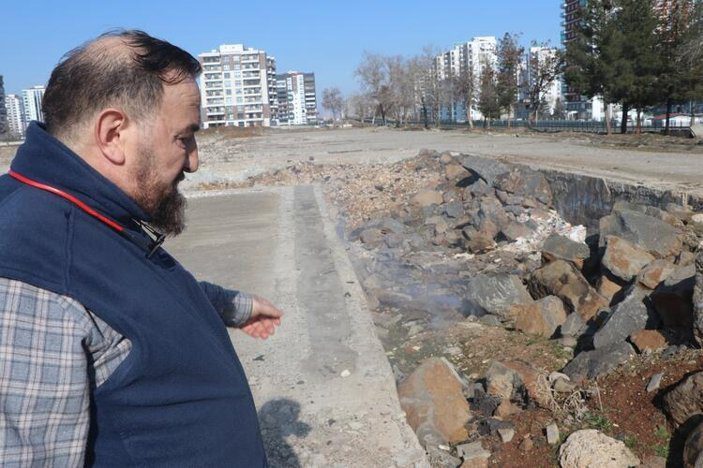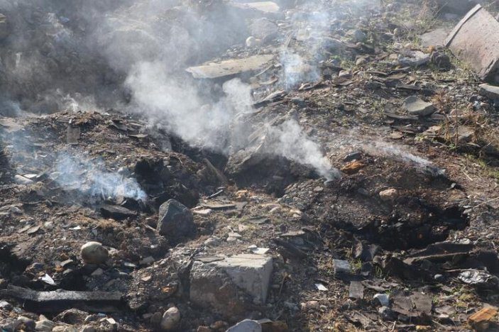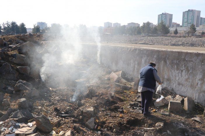 Depremlerin hissedildiği Diyarbakır’ın Kayapınar ilçesi Fabrika Mahallesi eski Gümrük Müdürlüğü binasının arkasında yer alan boş arazide ise yıkıntıların arasından dumanlar yükseldi.