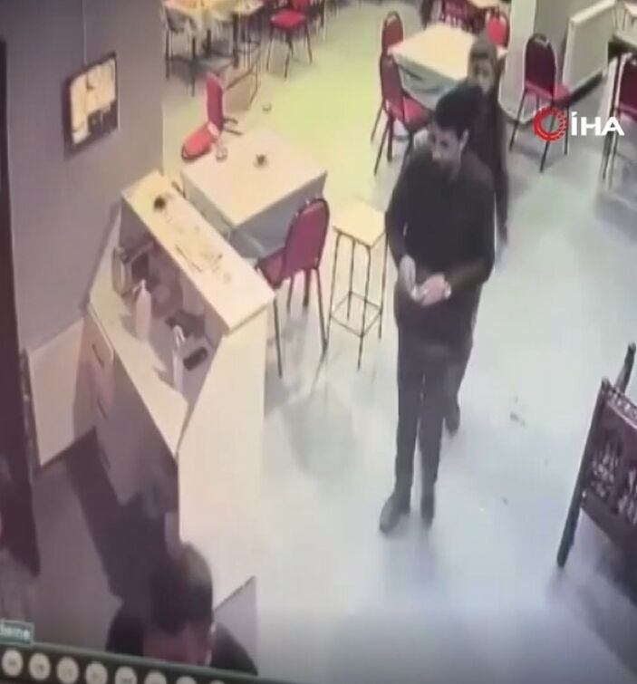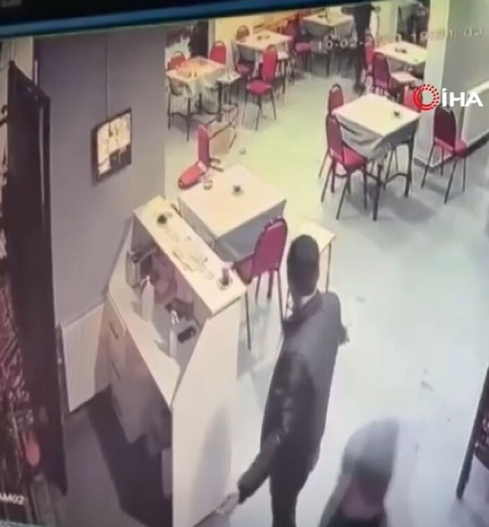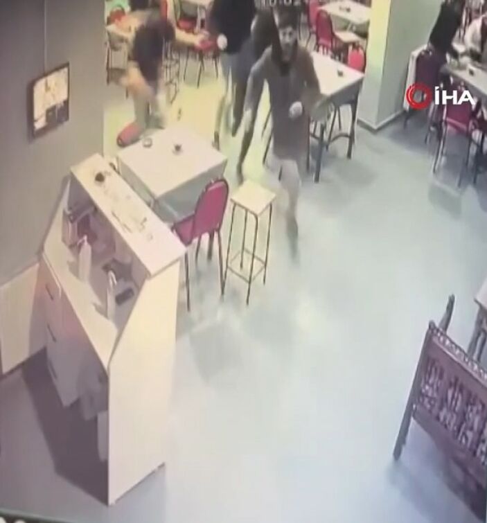 Panik anları güvenlik kamerasına yansırken, kaçış sırasında bir vatandaşın elindeki çayı bırakmadan koşturduğu görüldü.