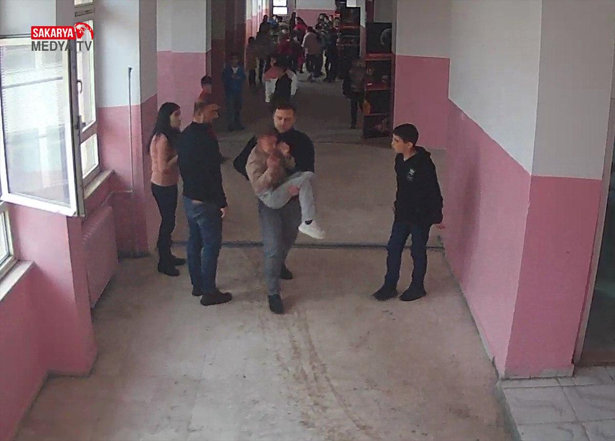 Öte yandan, öğretmenin öğrencisinin hayatını kurtardığı anlar okulun güvenlik kamerasınca kaydedildi.