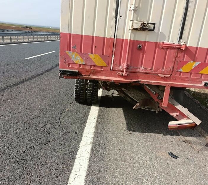Sürücüsünün hakimiyetinden çıkan otomobil, bir kamyona arkadan çarptı.
