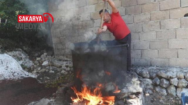 BÜYÜK KAZANLARDA SAATLERCE KAYNATILIYOR, EZİLİYOR VE SÜZÜLÜYOR