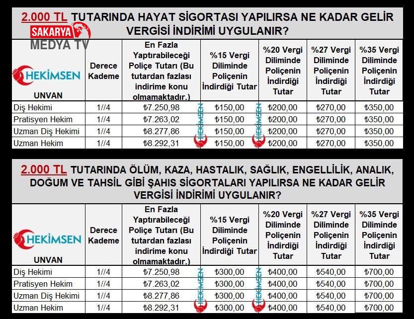 Hekimsen bu mevzuda yaptığı bir araştırmayı X hesabından paylaştı. Paylaşımda şu bilgiler yer aldı, “Hayat ve şahıs sigorta primlerinin gelir vergisi indirim meblağı ne kadardır ? Gelir Vergisi matrahından düşülebilen sigorta primleri ve uygulanabilecek indirim oranları nelerdir? Konut, taşıt ve tüketici üzere kredilerin kullanımı sırasında bu kredilere bağlı olarak ilgili bankalarca yapılan hayat sigortası poliçelerine indirim olur mu ? Birikimli birikimsiz hayat sigortası nedir ? Gelir Vergisi matrahından hayat ve şahıs sigorta primlerinin indirilebilmesi için gereken kurallar nelerdir? Sigorta Primlerinin Toplu Ödenmesi Durumunda İndirim Nasıl Uygulanır? Soruların ayrıntılı karşılıkları için Hekimsen web sayfası linkini tıklayınız”