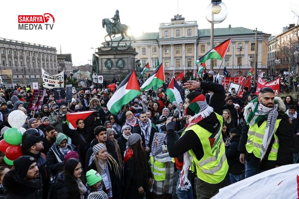 İsveç’in başşehri Stockholm’de Filistin destekçileri, Lübnan ve İsrail ortasındaki ateşkesi kutlamak ve Gazze ile Batı Şeria’ya takviye vermek hedefiyle sokaktaydı.