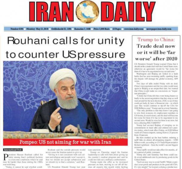 İran Cumhurbaşkanı Ruhani’nin, ABD’nin yaptırımları karşısında yaptığı birlik çağrısı, İranlı gazetenin ana gündem maddesi oldu.