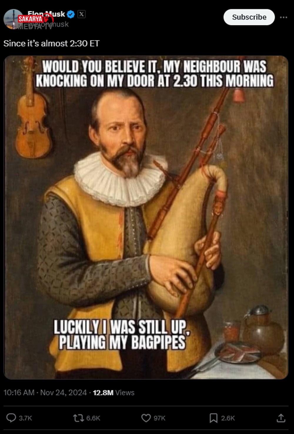 Elon Musk, sahibi olduğu X (eski ismiyle Twitter) profilinde yaptığı açıklamalarla yeniden dikkatleri üzerine çekti. Dünyanın en güçlü adamı, vakit seyahati yapan bir vampir uzaylı olduğunu tez ederek toplumsal medyada gündem oldu. Musk, son olarak yaptığı bir paylaşımda; “İnanır mısınız, komşum bu sabah saat 2.30’da kapımı çaldı.