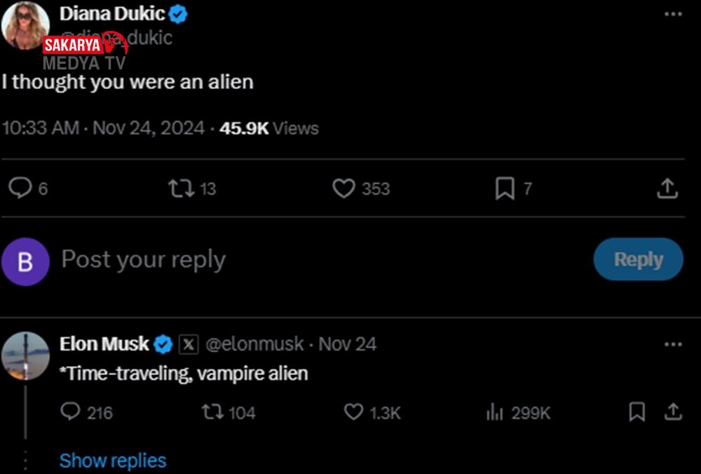 Ardından bir X kullanıcısı daha evvel Musk’ın “3000 yaşında bir vampir” olduğunu söylediği bir gönderiyi paylaşarak “Vampir olduğun için mi uyumuyorsun?” yazdı. Musk ise “Ben vakit seyahati yapan bir uzaylı vampirim!” biçiminde yanıt verdi.