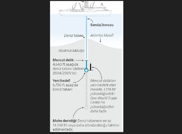 Araştırmacılar, yıllar önce açılan ve derinliği 1400 metreyi bulan deliğin derinliğini 2 bin metre civarına çıkarmak istiyor. Delik, deniz tabanındaki en derin delik olmayacak, ancak mantoya her zamankinden daha fazla yaklaşılacak ve okyanus kabuğunun daha önce ulaşılmamış daha derin katmanları hedeflenecek. Yeni derinlikte, sıcaklıkların 200 dereceye ulaşması bekleniyor. Çukurun derinleşme süreci oldukça zorlu geçecek. Gemideki mühendisler, ağır sondaj araçlarını yaklaşık 1645 metre derinliğe indirmeyi planlıyor.