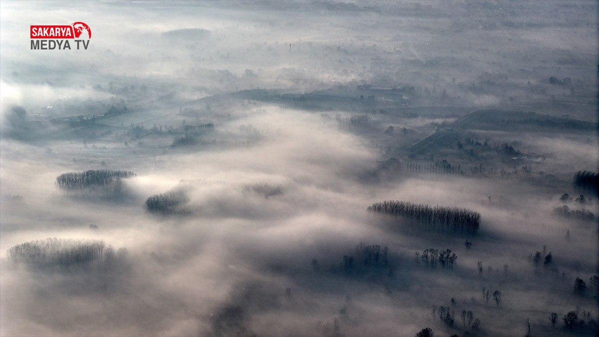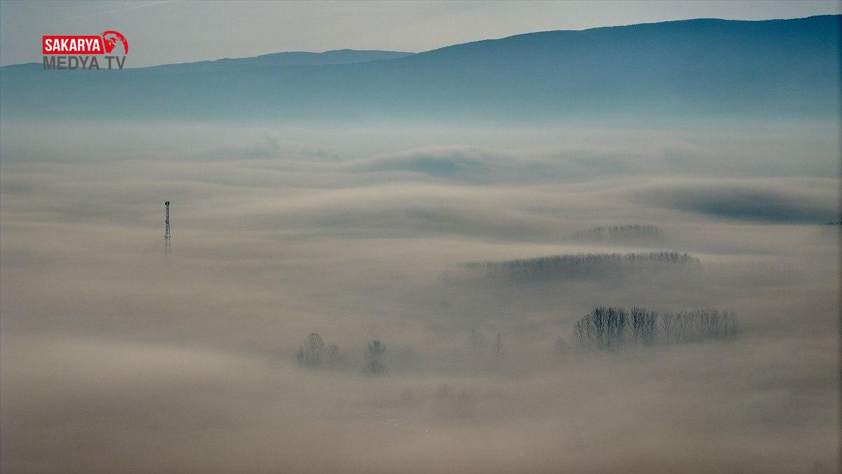 Dağların eteklerinde oluşan ve adeta sis denizini andıran manzara, havadan görüntülendi.