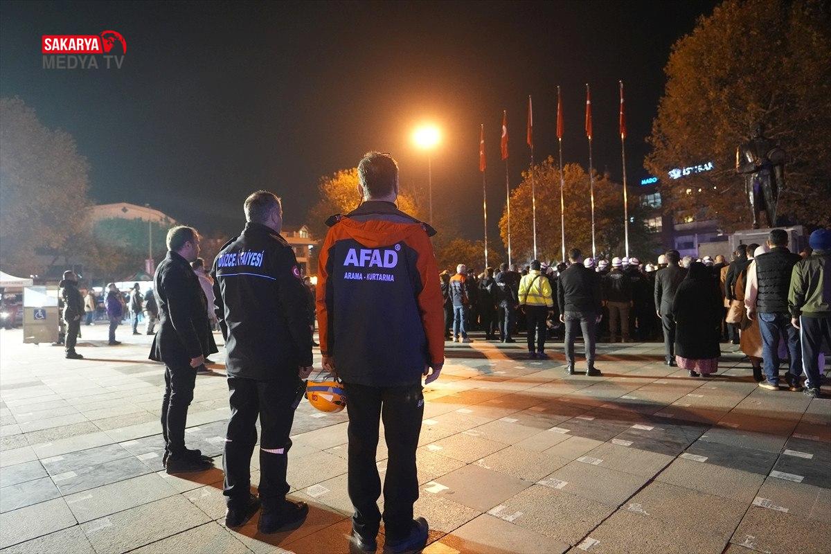 Saat 18.57’ye geldiğinde hayatını kaybedenler için sirenler eşliğinde, deprem süresini temsilen 45 saniyelik saygı duruşunda bulunuldu.