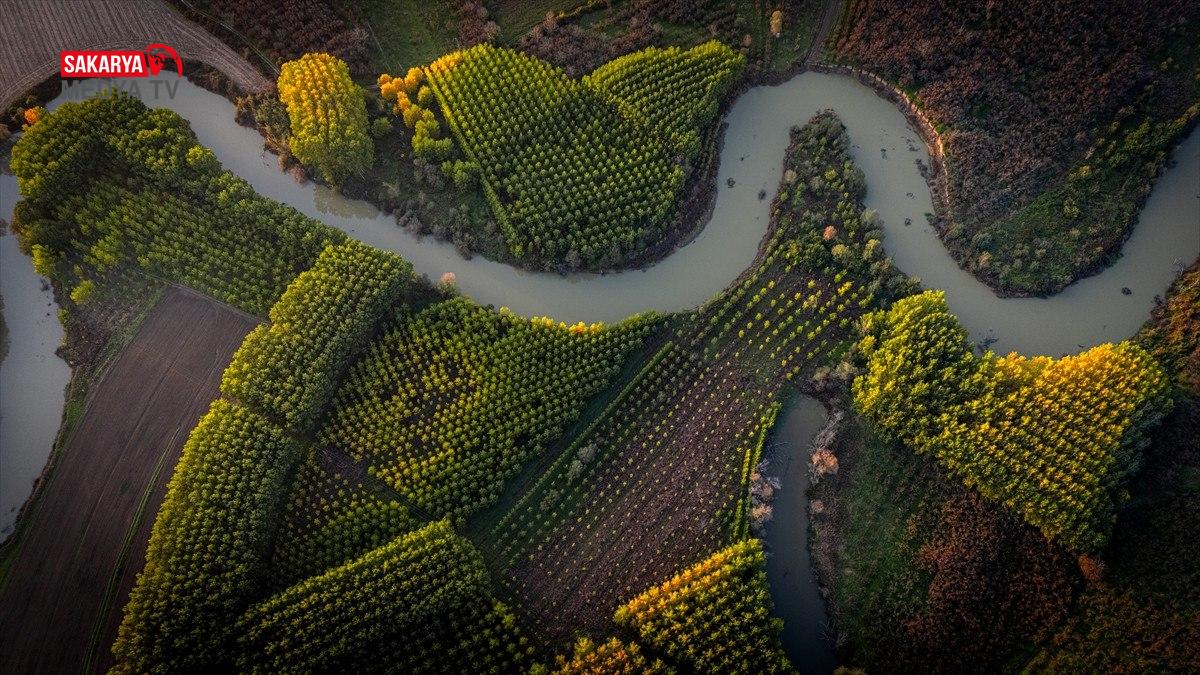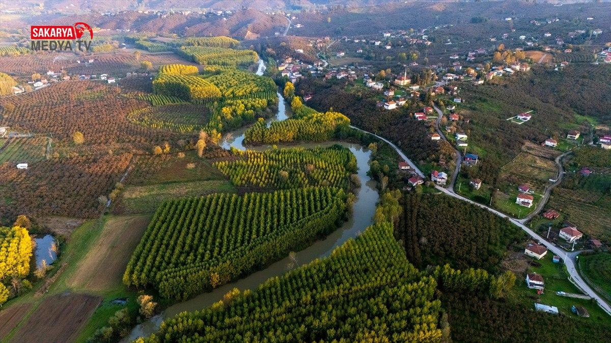 Sonbahar mevsiminin tüm renklerinin bir arada görülebildiği Melen Çayı Havzası’nda ağaçlar, yeşil, sarı, kahverengi ve kızılın tonlarıyla güzel manzara oluşturdu.