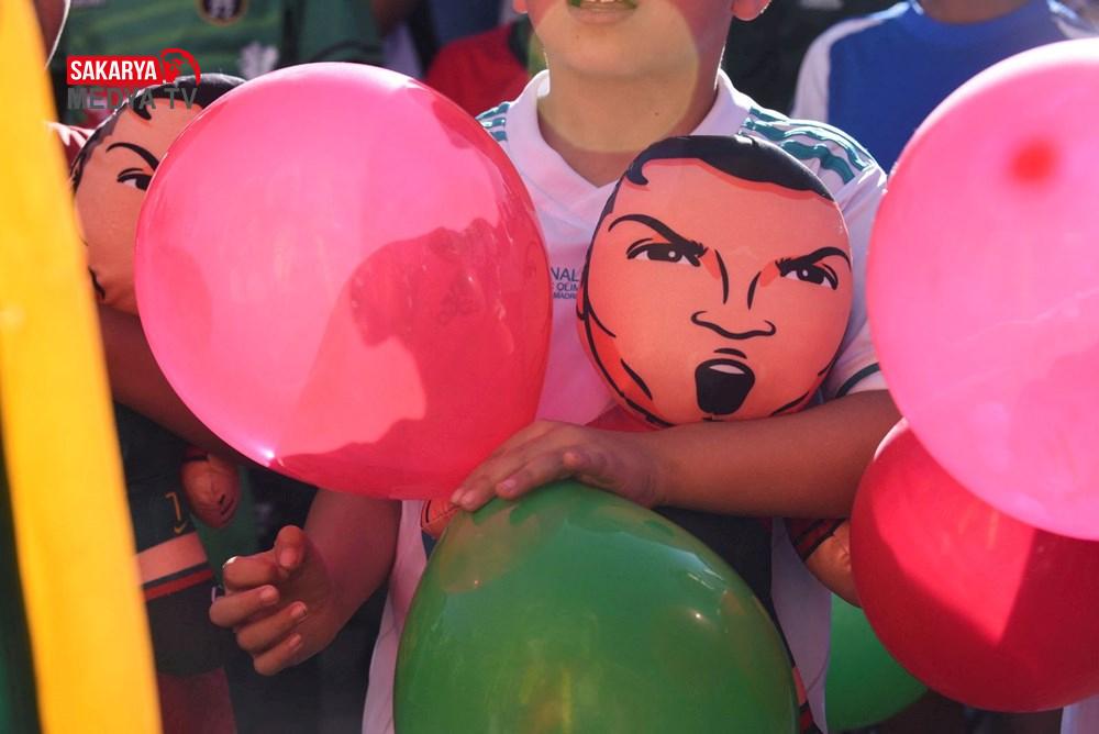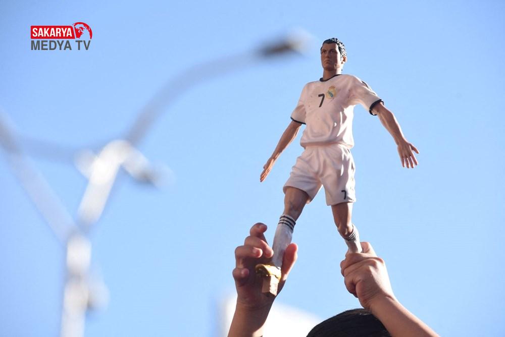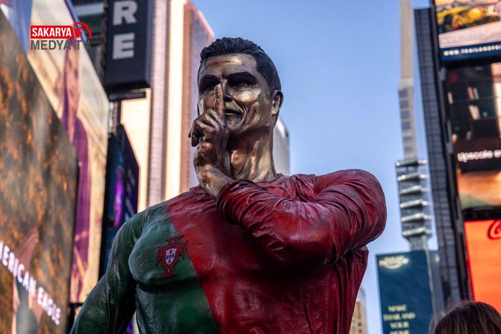 Heykelin etrafındaki maskotun performansıyla eğlenen hayranlar, “Siu” yapmayı ihmal etmedi.
