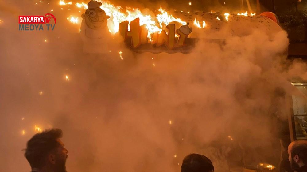 Alevlerin ortasında işletmeyi terk eden müşteriler büyük panik yaşarken, itfaiye takımları gelene kadar vatandaşlar yangın tüpleriyle alevleri söndürmeye çalıştı.