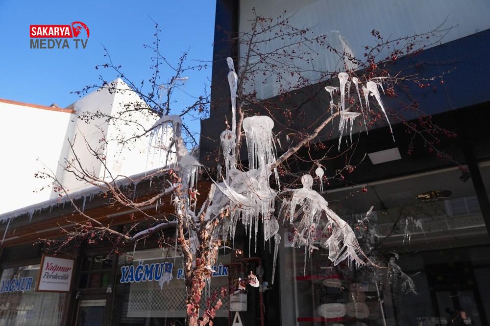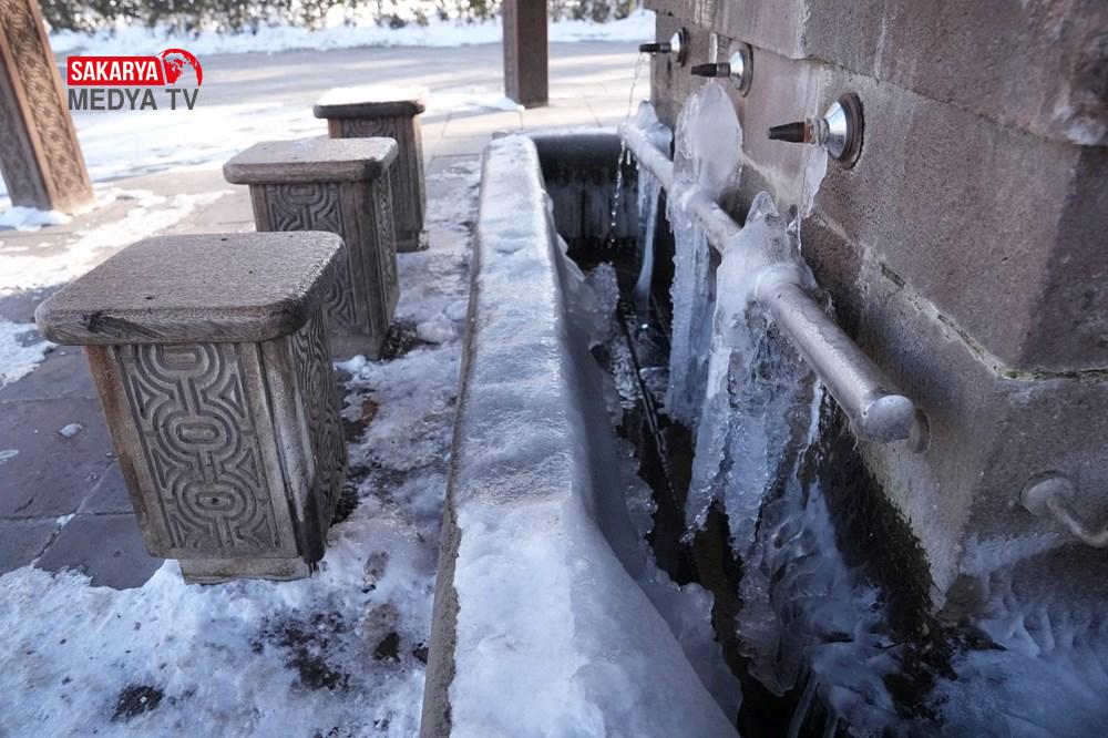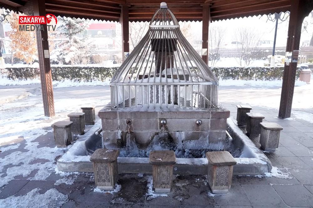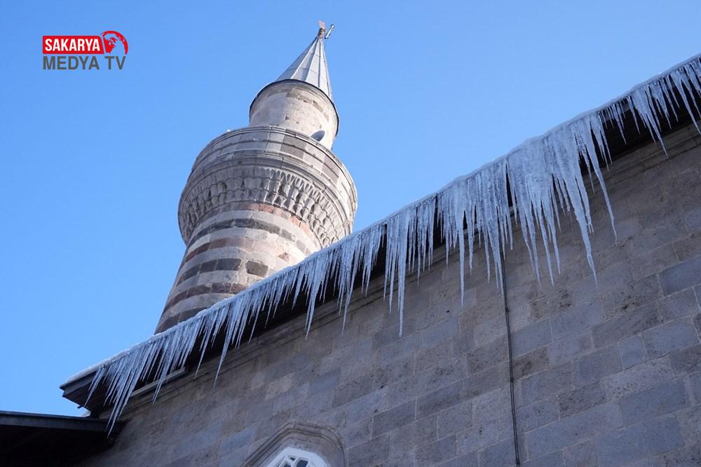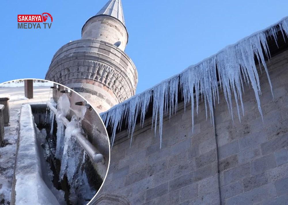 Gece sıcaklığın sıfırın altında 17 derece ölçüldüğü Erzurum’da, park halindeki araçların camları buz tuttu. Cami bahçelerindeki şadırvanların buzla kaplandığı kentte, binaların çatılarında da buz sarkıtları oluştu.