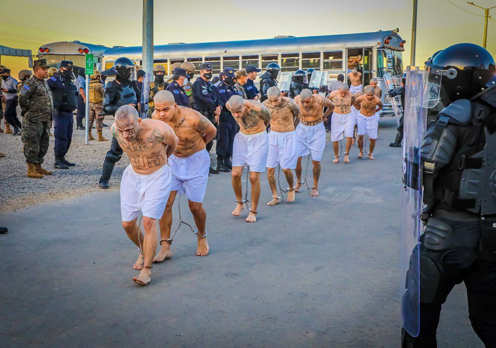 Orta Amerika ülkesi El Salvador Devlet Başkanı Nayib Bukele’nin talimatıyla yapılan 40 bin kapasiteli Amerika kıtasının en büyük hapishanesine 2 bin çete üyesi nakledildi. Cumhurbaşkanı Bukele, Twitter hesabından yaptığı paylaşımda, çetelere karşı yürütülen savaşta gurur duydukları bir güvenlik seviyesine ulaştıklarını söyledi. Yüksek güvenlikli olarak inşa edilen mega hapishanesinin videosunu hesabında tanıtan Bukele, “Burası, halka daha fazla zarar vermeden on yıllarca karma şekilde yaşayacakları yeni evleri olacak.” ifadesini kullandı. Adalet ve Güvenlik Bakanı Gustavo Villatoro, açıklamasında, Terör Muhafaza Merkezi (CECOT) diye tanımlanan hapishanenin inşaatının tamamlandığını belirterek, “Hücre, hücre bu kanseri toplumdan temizliyoruz.