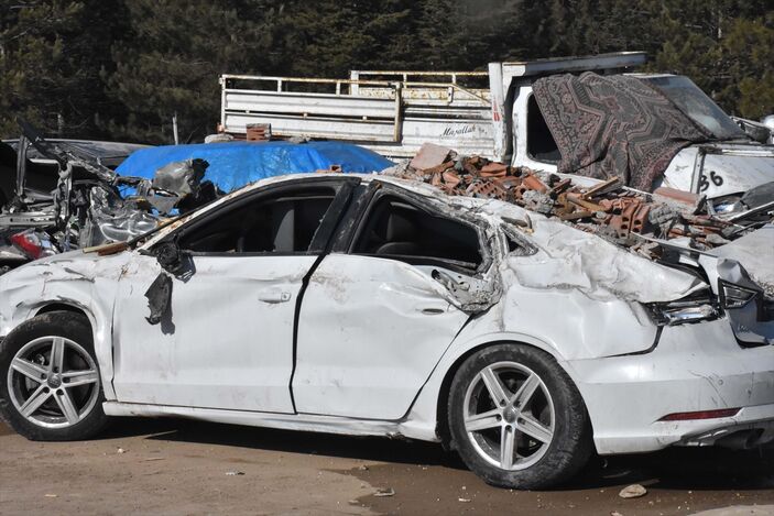 Araçların görüntüsü, depremin şiddetini adeta gözler önüne seriyor.