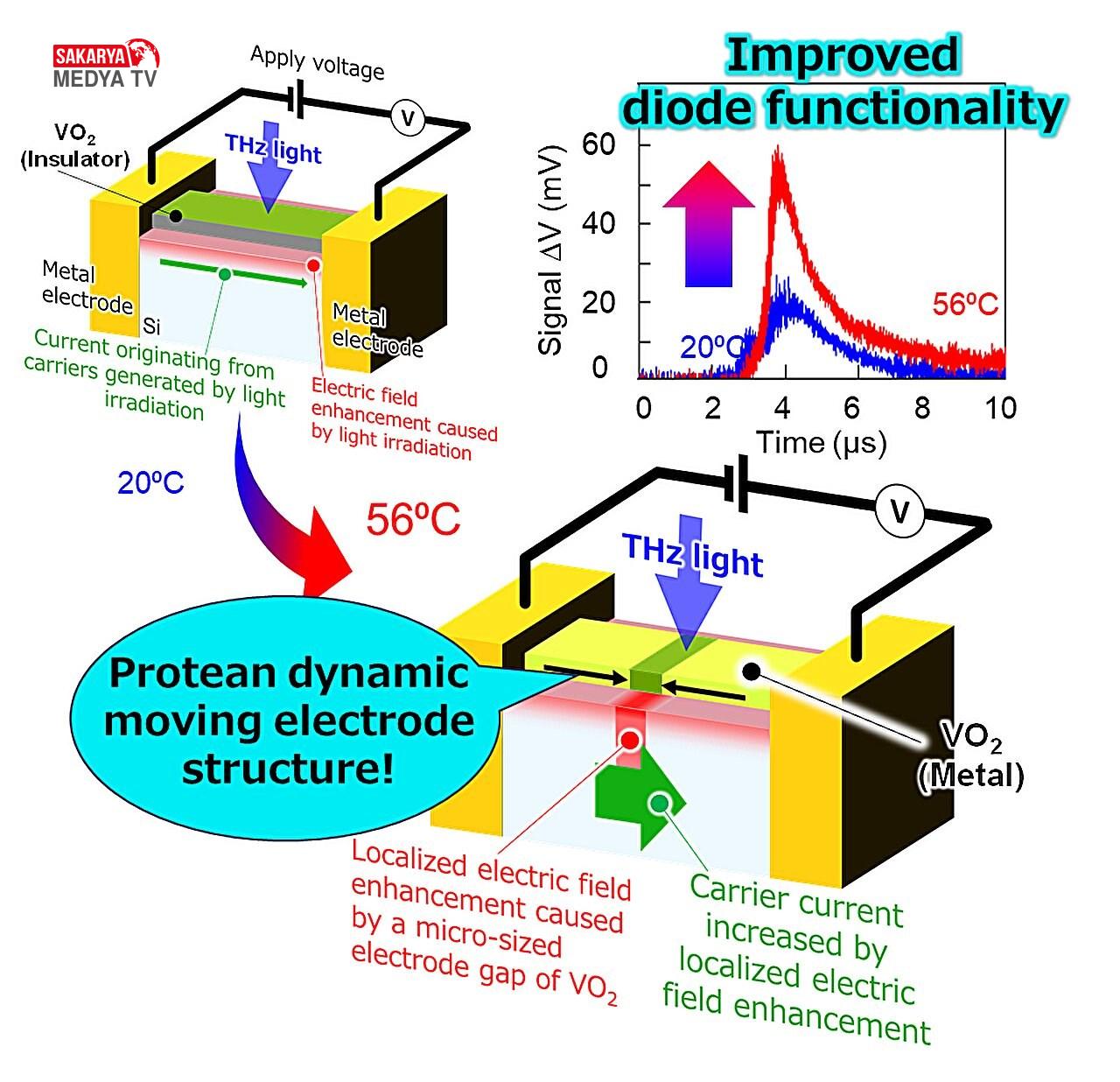 Bu malzemenin dikkat çekici özelliği, iletkenlik ve yalıtkanlık arasında dinamik bir şekilde geçiş yapabilmesi. VO₂ ısındığında, bileşen içinde metal benzeri minik bölgeler oluşuyor ve genişliyor. Isıyı kontrol ederek, bu metal bölgeler “canlı ayarlanabilir elektrotlar” olarak hareket ediyor. Araştırmacılar bu özelliği VO₂ içeren bir terahertz fotodetektör oluşturarak test de ettiler. Ancak buradaki “canlı” söylemi biyolojik veya organik bir sisteme atıf yapmıyor. Burada dikkat çekilen, VO₂’nin sıcaklık değişimiyle dinamik olarak faz değiştirmesi ve elektrot gibi işlev görmesi.