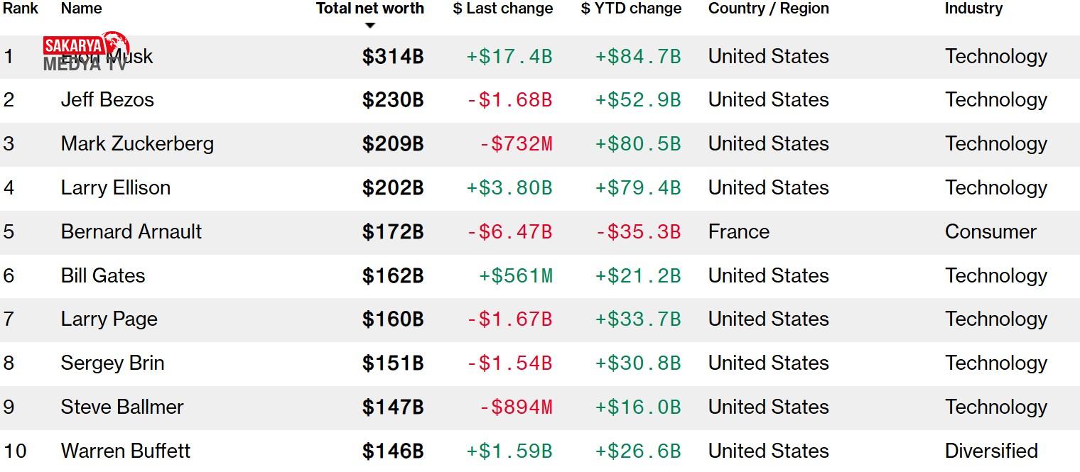 ABD’deki başkanlık seçimlerinin ardından Tesla ve SpaceX’in CEO’su Elon Musk’ın serveti, neredeyse üç yılın ardından tekrar 300 milyar doları aştı. Bloomberg Milyarderler Endeksi’ne göre, Musk’ın serveti, Donald Trump’ın başkan seçilmesi sonrasında Tesla hisselerindeki yükselişle hızla artmaya devam ediyor. Musk, servetini servet kattı