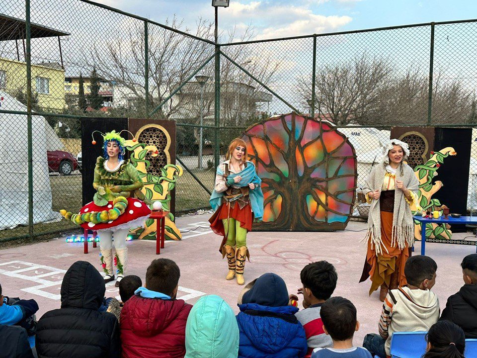 20 Şubat’ta Gaziantep Masal Park’ın içinde yer alan çadır kentte deprem bölgesindeki ilk temsilimizi gerçekleştirdik” diye konuştu.