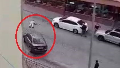 O anlar cep telefonu kamerasıyla kaydedilirken, Yener K. aracı ile kaçtı.
