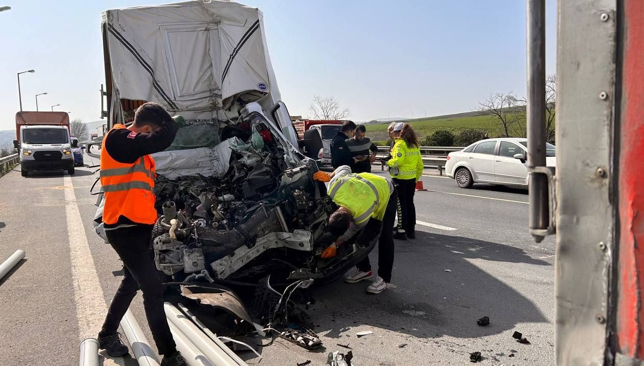 TEM’de TIR’a çarpan kamyonet hurdaya döndü