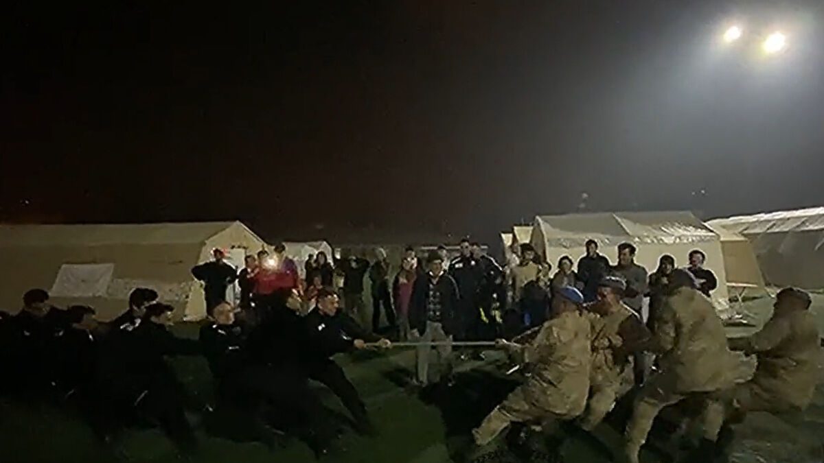 Jandarma komando ve polisler çadır kentte halat çekme oyunu oynadı
