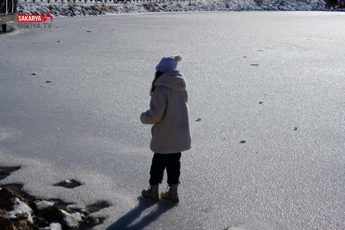 Buzla kaplanan göl ile etrafı, seyrine doyumsuz bir görünüm ortaya çıkardı.