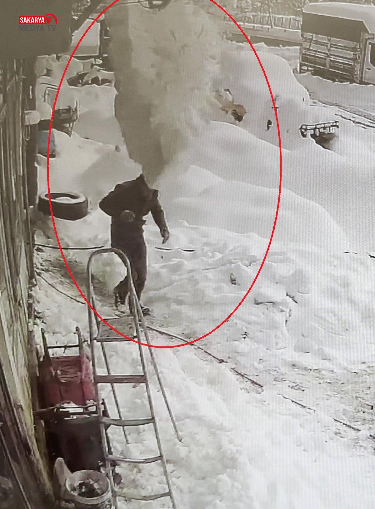 DHA Erzurum’un Tortum ilçesi Yavuz Sultan Selim Mahallesi’nde meydana gelen olayda oto lastik tamirciliği yapan Kahraman Kaya, Tortum Belediyesi’ne ilişkin traktörün lastiğini tamir etmeye başladı. İki katlı dükkandan gereç alıp traktörün yanına dönen Kaya’nın üzerine çatıdan kar kütlesi düştü. Kaya baht yapıtı kazayı küçük sıyrıklarla atlatırken, o anlar iş yerinin güvenlik kamerasına yansıdı.