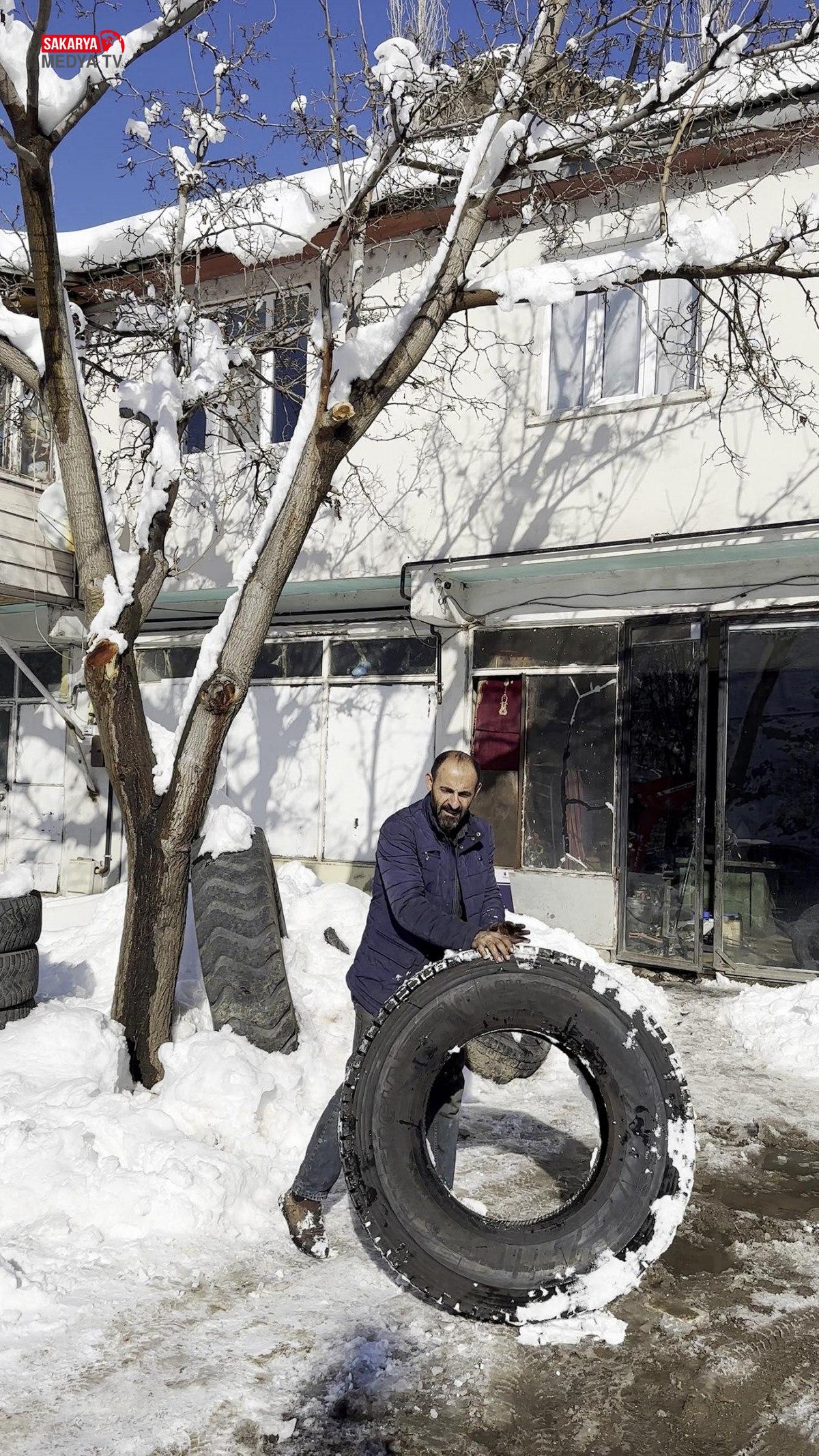 Kış aylarında çatıdan kar düşme tehlikesine karşı ikazlarda bulunan Kahraman Kaya, şunları söyledi:Belediyeye ilişkin traktörün lastiğini tamir ediyordum.