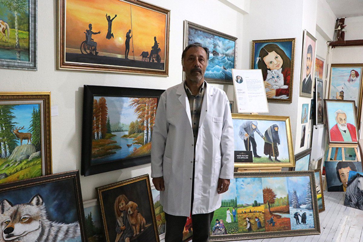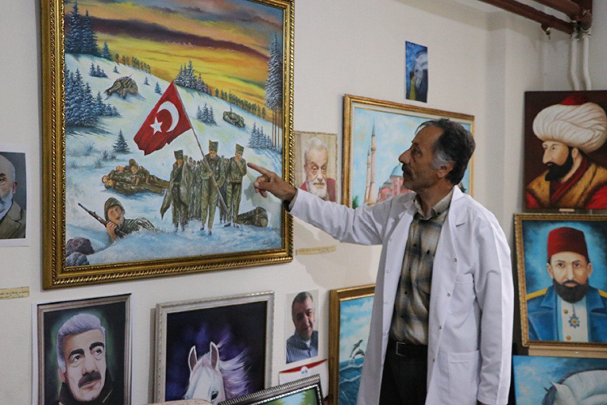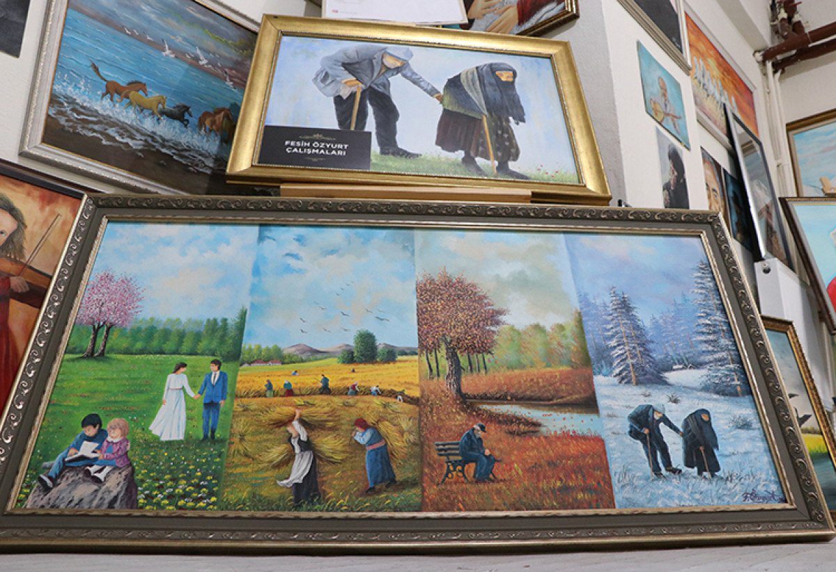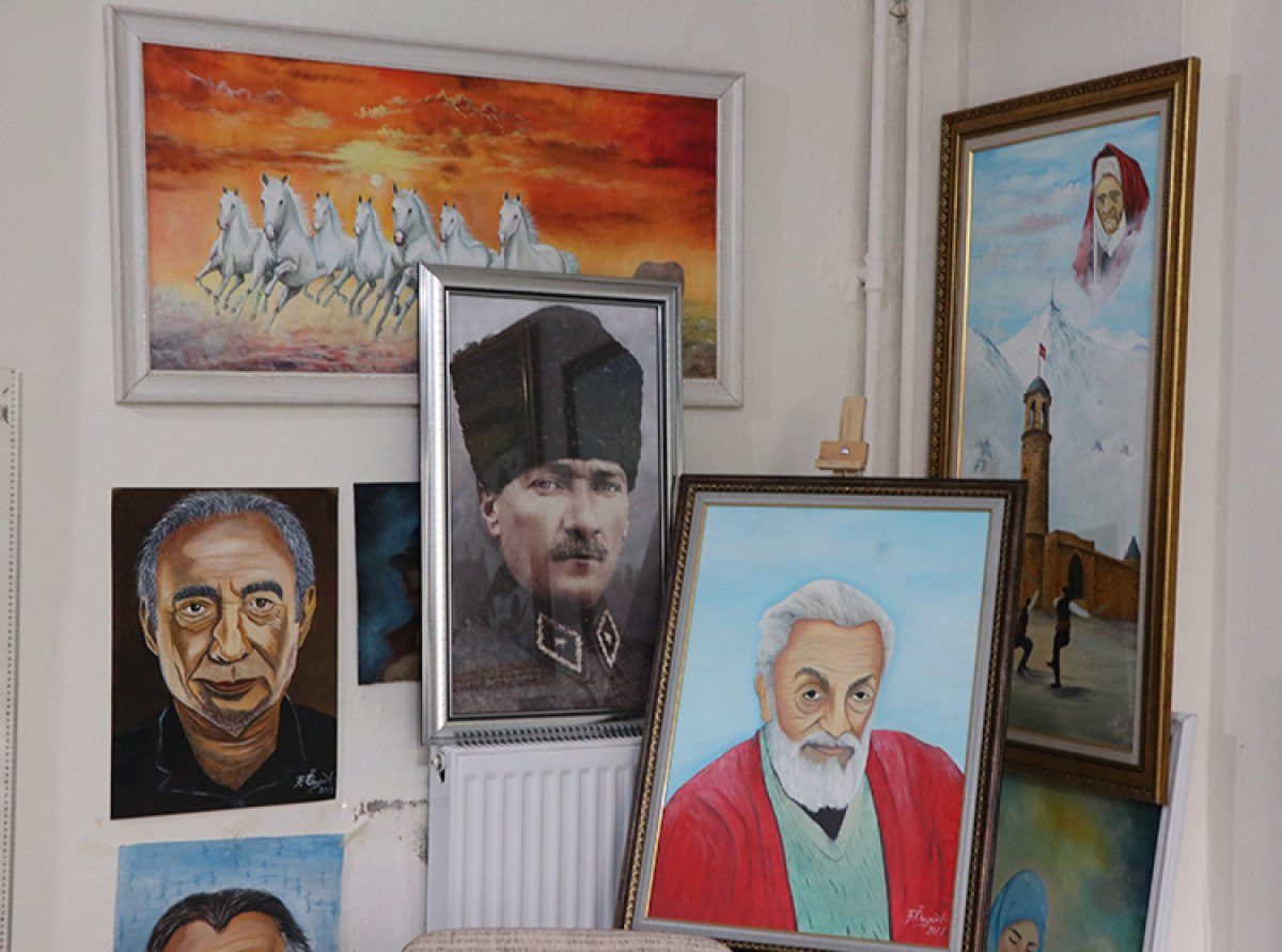 Şu anda atölyemde yaklaşık 100 tablo var.” diye konuştu. Özyurt, Erzurum Vilayet Özel Yönetiminden emekli olduktan sonra Halk Eğitim Merkezi’nde hem kendini geliştirip hem de bilgi ve marifetlerini kursiyerlere aktardığını belirtti.