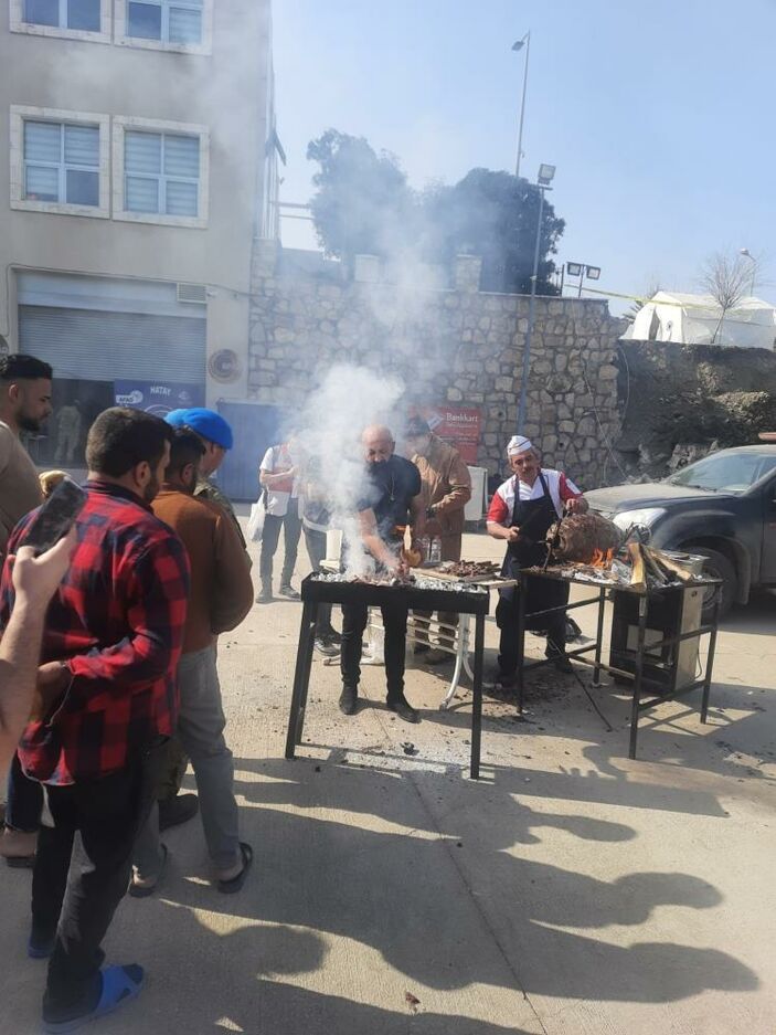Erzurum Valisi Okay Memiş’in de koordinatör vali olarak görev yaptığı Hatay’da depremzedelere cağ kebabı hazırlayan işletmeciler, “Burada bugün depremzede kardeşlerimiz için böyle bir planlama yaptık.