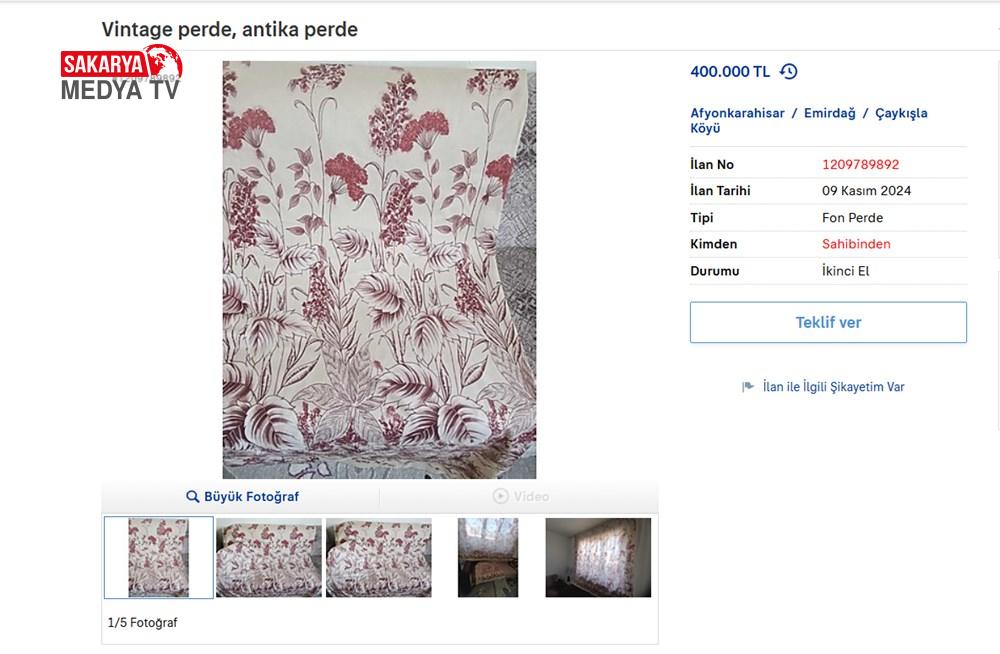 Afyonkarahisar’ın Emirdağ ilçesinden yayımlanan bir ilanda da perdenin iddiası 40 yıllık olduğuna dikkat çekilirken fiyatı 400 bin lira.