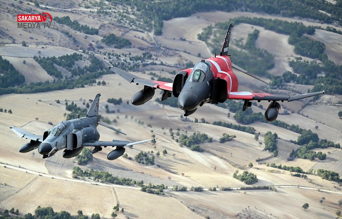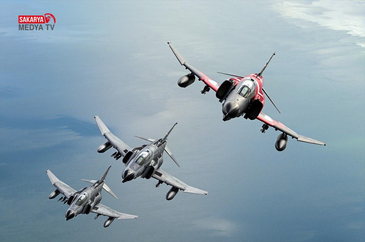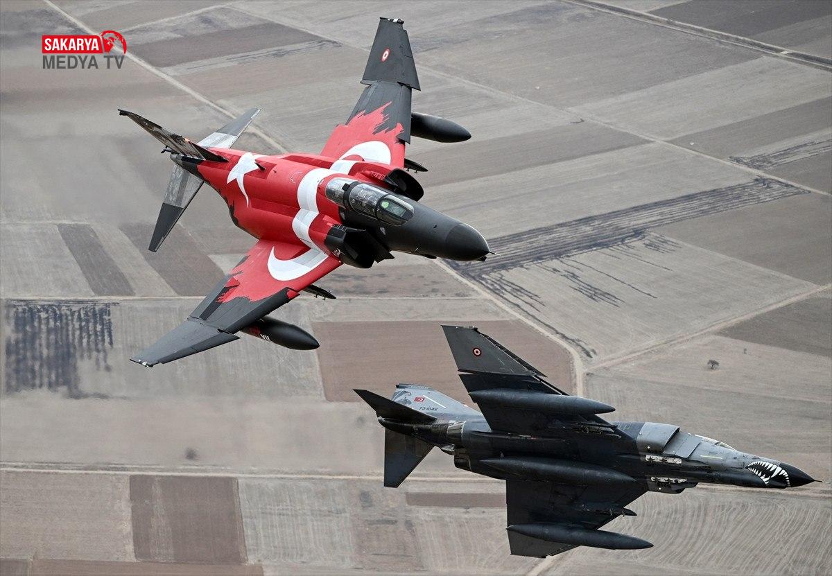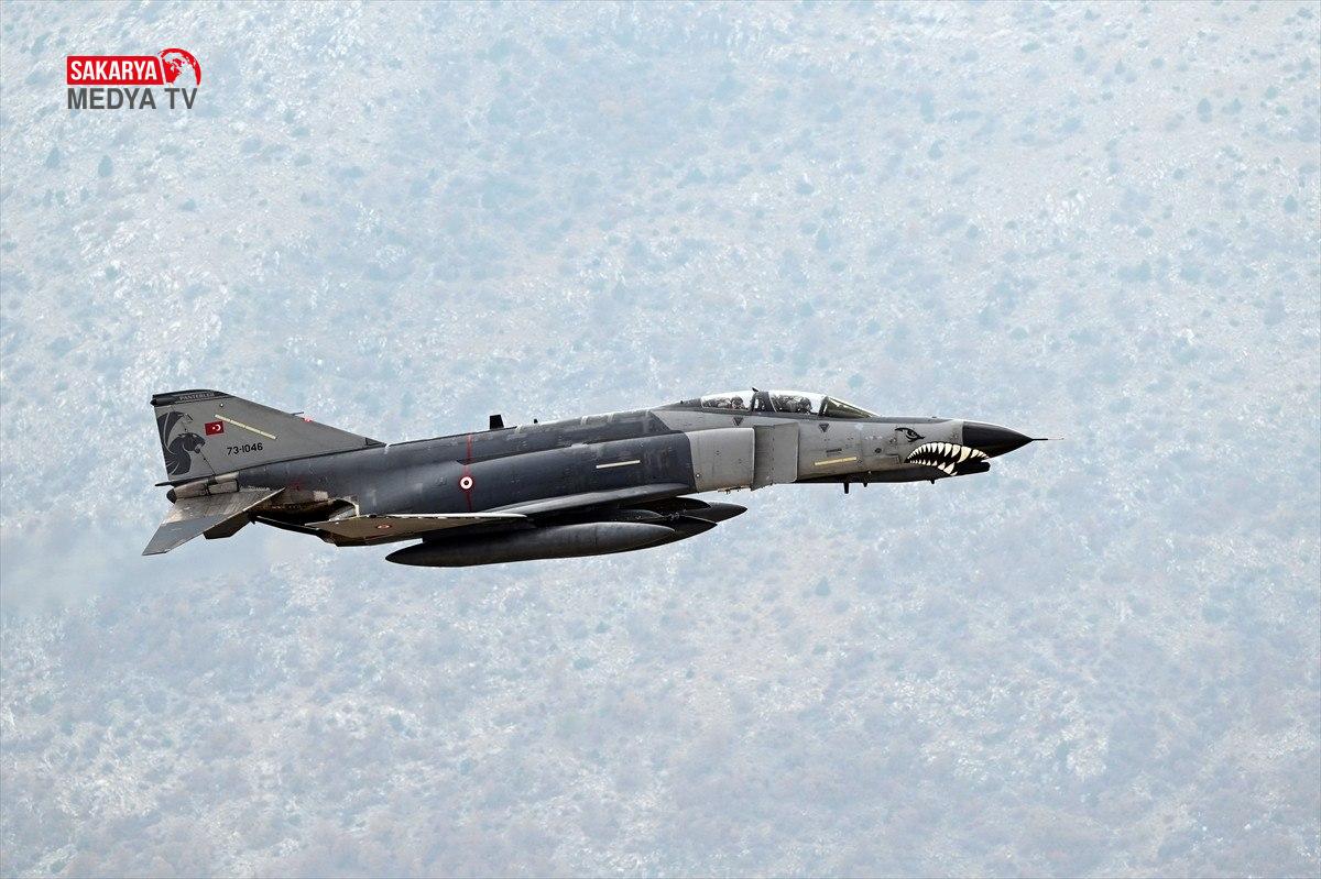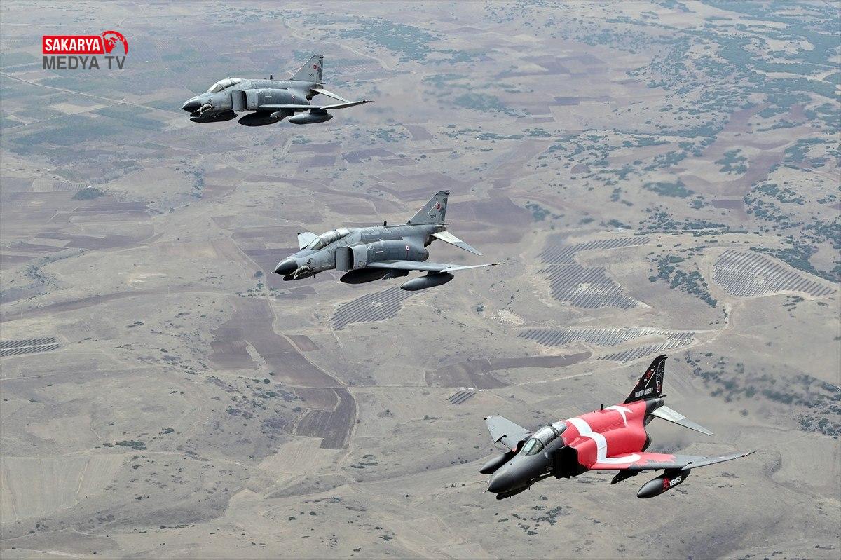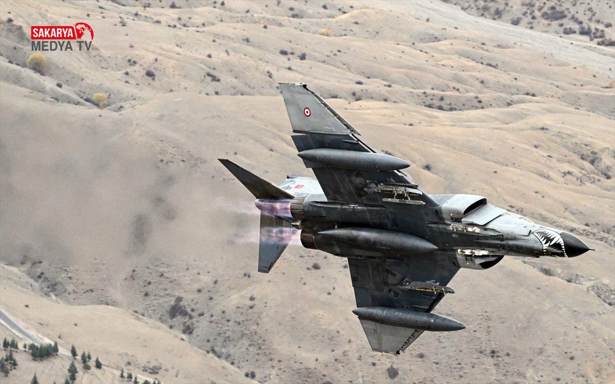 Üçlü kol uçuşu yapan “F-4E Phantom” uçakları, konum alarak havada yer amaçlarına taarruza ait eğitim faaliyeti icra etti.