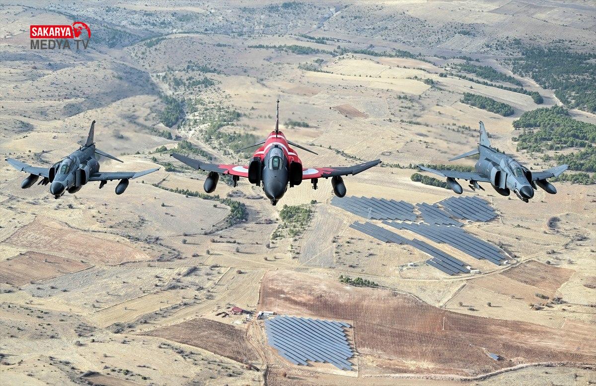 Eskişehir’deki 1’inci Ana Jet Üs 111’inci Filo Komutanlığına (Panter Filo) bağlı, birinin gövdesinde Türk bayrağı, kuyruğunda Büyük Lider Mustafa Kemal Atatürk’ün bakışlarının yer aldığı fotoğraflarla renklendirilmiş 3 uçak, buradaki jet üssünden havalandı.